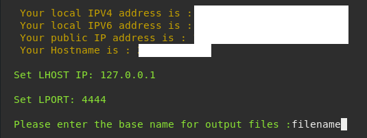 - 생성 위치 : /home/user/Downloads/TheFatRat/output/파일이름.exe
