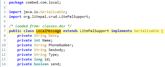 사용자의 데이터를 가져오는 소스 중 LocalMessage.java를 살펴보자.